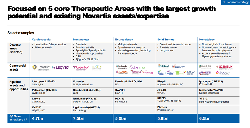 在周一上午的演講中,諾華首席執行官Vas Narasimhan表示:公司的 2023 年戰略側重于五個治療領域:心血管、免疫學、神經科學、實體瘤和血液學。