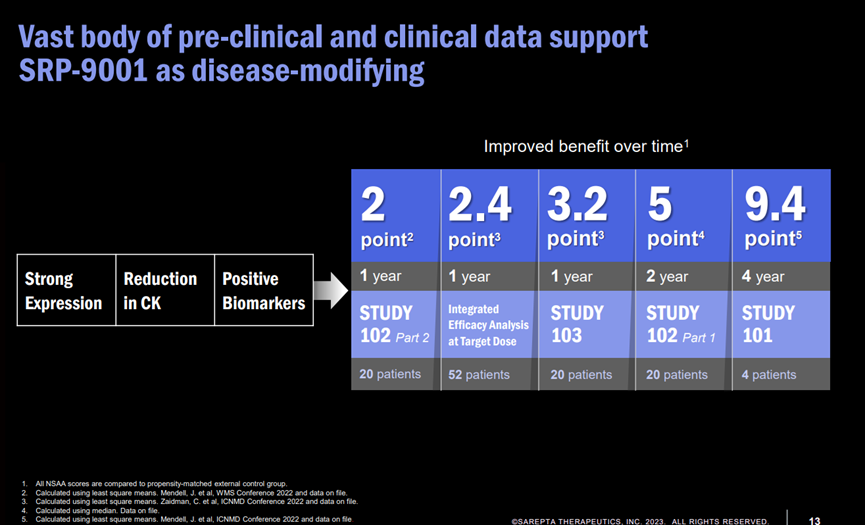 Doug Ingram在大會上公布了相關數據,其中包括臨床前動物模型,功能數據和生物標志物等,大量臨床前和臨床數據支持SRP-9001的療效。