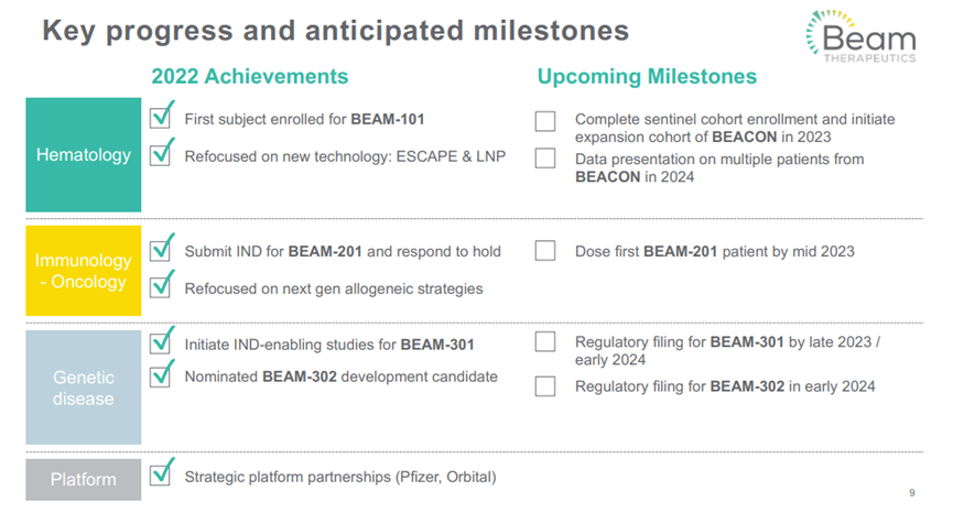 Beam 公司報告了公司血液學,免疫腫瘤學和遺傳疾病產品組合的進展,并提供了預期即將到來的里程碑的最新情況。