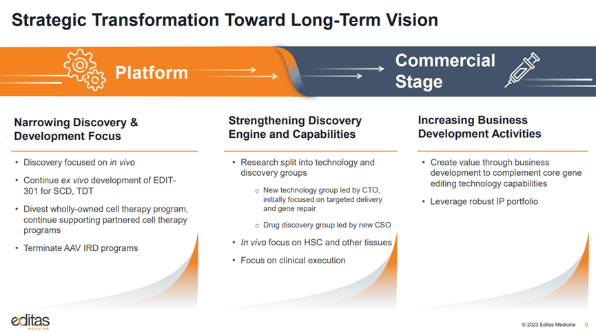 Editas表示,將停止對遺傳性視網膜疾病和臨床前全資擁有的iNK項目的內部投資,專注于血紅蛋白病和體內基因編輯。公司將資源優先分配給EDIT-301,該項目用于治療嚴重鐮狀細胞病和輸血依賴性β地中海貧血。