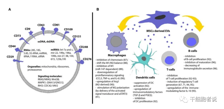 MSC-EV對多種類型的免疫細胞均具有免疫調節作用,包括樹突狀細胞、T細胞、B細胞和巨噬細胞。在關節炎模型中,MSC-EV體內炎癥抑制作用比MSC更強。