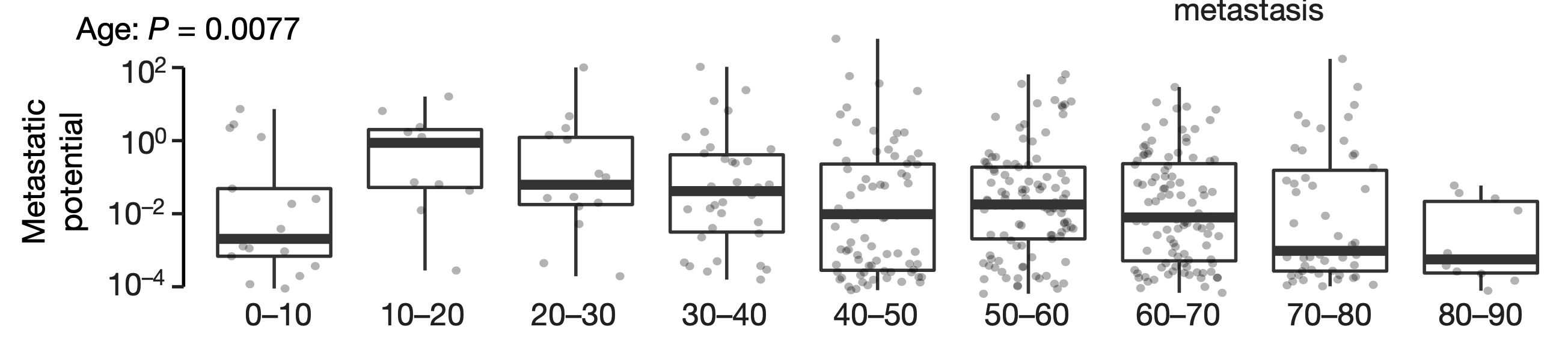有一個出乎意料的現象是:癌細胞的轉移潛能降低與患者年齡增加之間竟然存在相關性。對于這一點,研究人員表示需要進一步的研究確定。