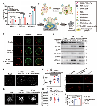 T-Tre/BCN-Lipo-Ava細胞顯示出增強的TCR集群和免疫學突觸的形成,抗腫瘤反應得到改善.Science Translational Medicine, 12(571), eaaz6667. doi:10.1126/scitranslmed.aaz6667