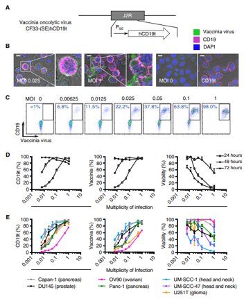 OVm19t促進內源性T細胞和過繼轉移的mCD19- CAR T細胞的腫瘤浸潤.
