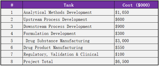 從第307問答中,可以看出整個IND申報中一共包含7個關鍵模塊,其研發成本的初步估計如下表:
