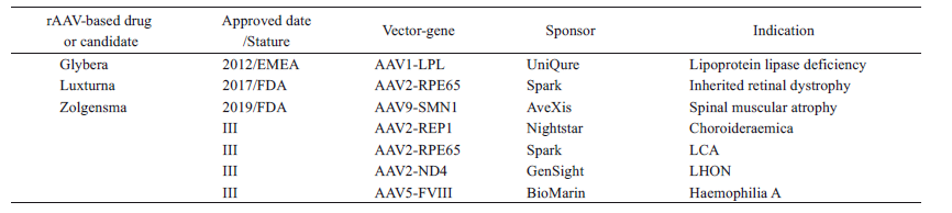 表1 rAAV基因治療產(chǎn)品的臨床應(yīng)用