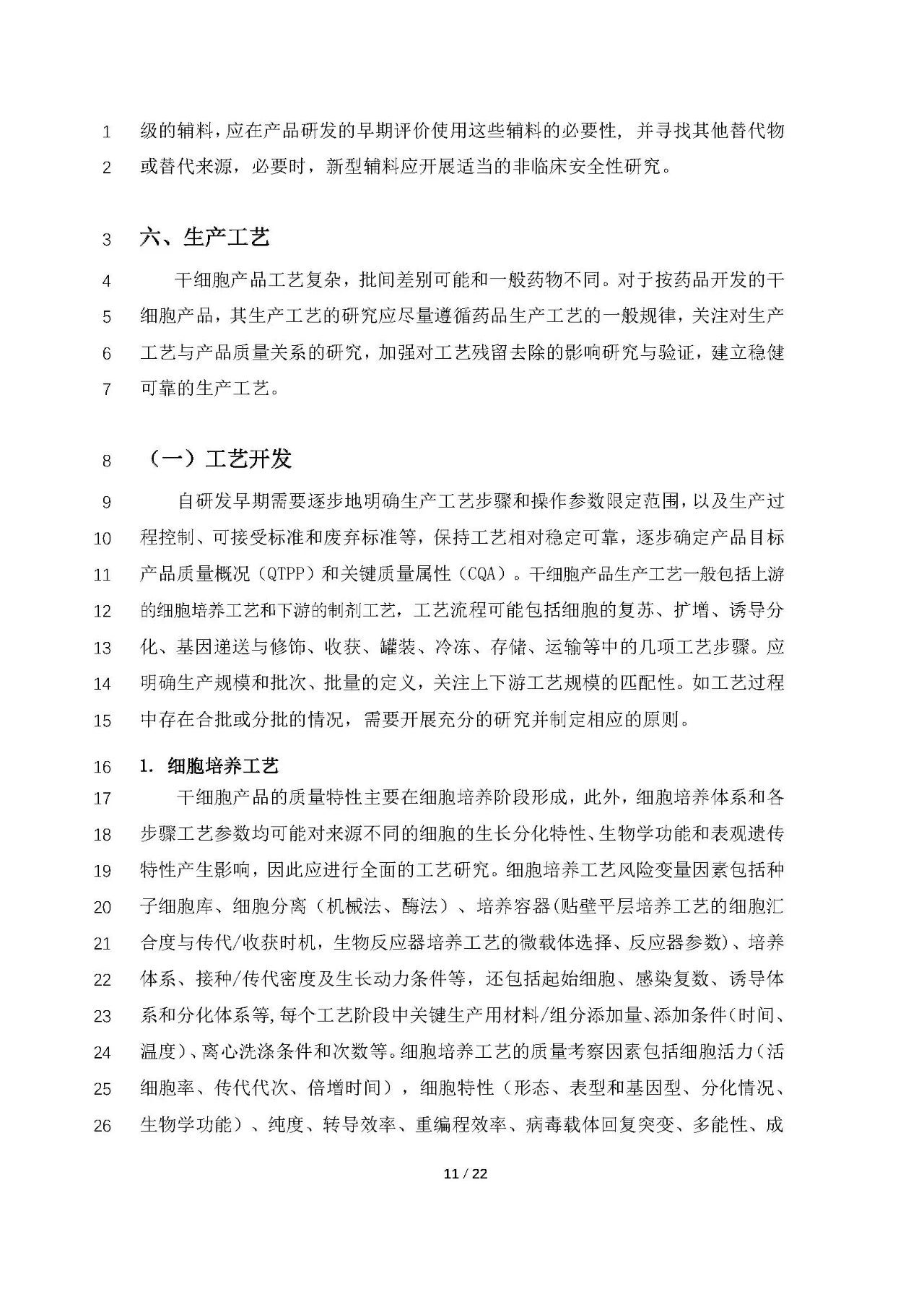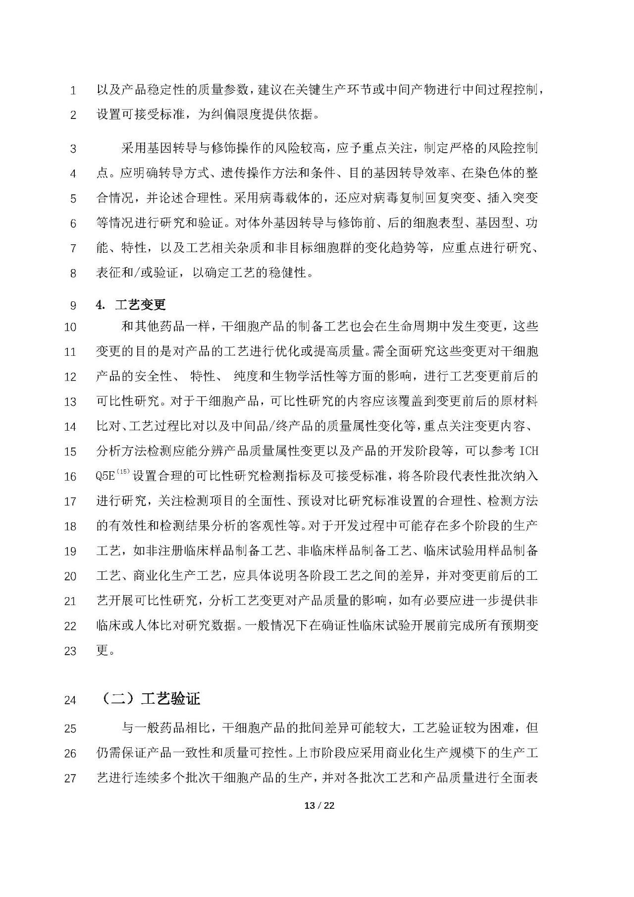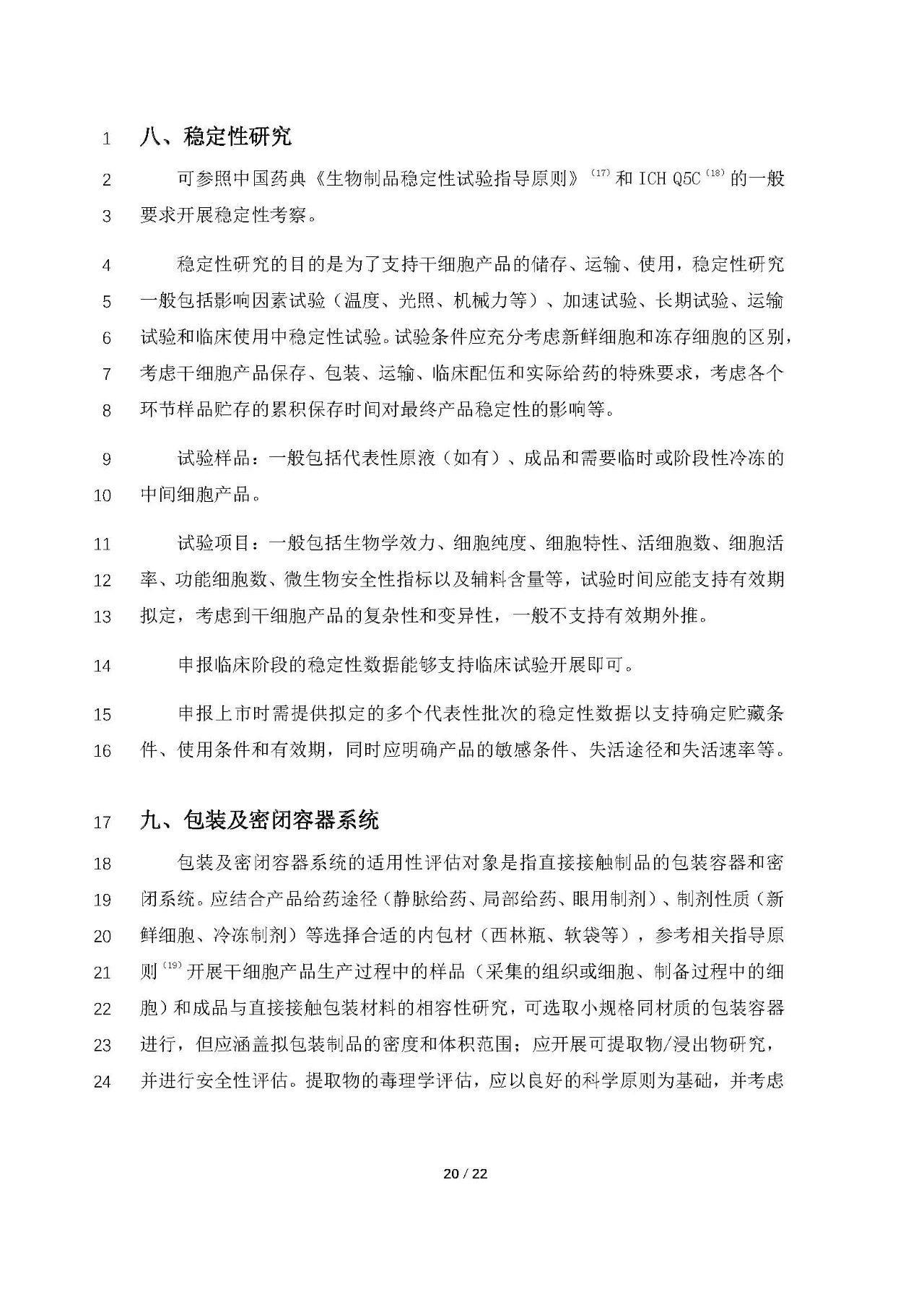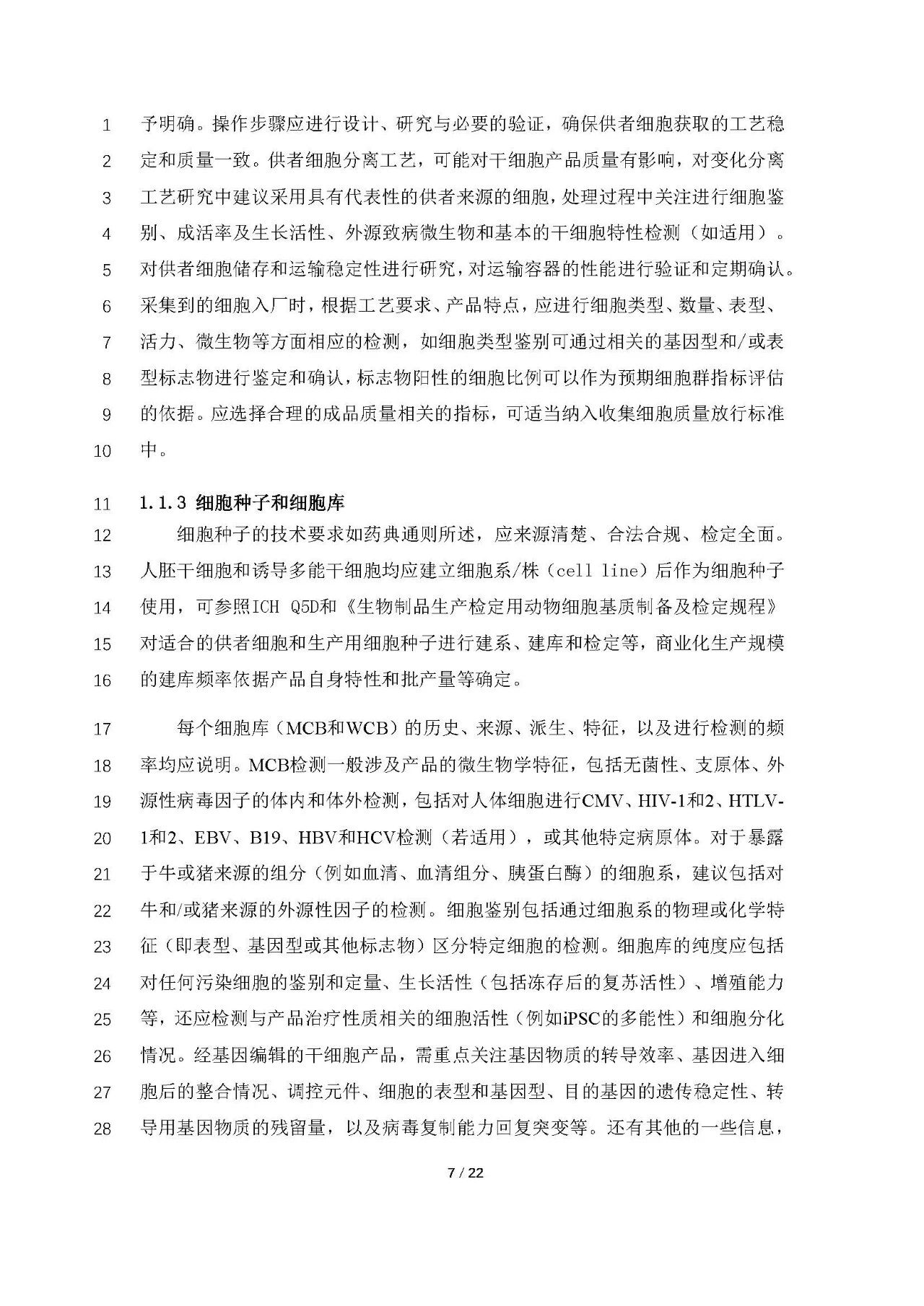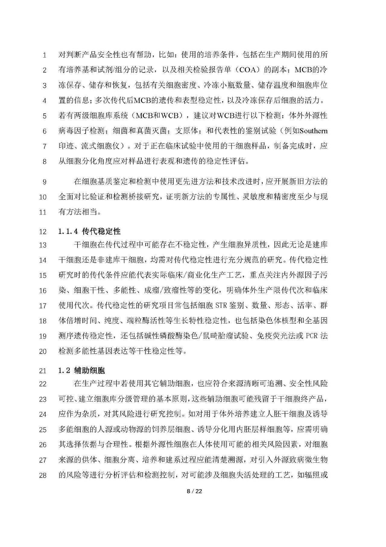 適用范圍:本指導原則中“干細胞產品”包括由人源性的成體干細胞(adult or somatic stem cells,ASCs/SSCs)、人胚干細胞(human embryonic stem cell, hESCs) 和誘導性多能干細胞(induced pluripotent stem cells,iPSCs)擴增、誘導分化,或成熟體細胞轉(分)化獲得的干細胞及其衍生細胞,與輔料相混合,分裝至特定容器,符合特定藥品放行標準,可直接應用患者,也可與組織工程材料 一起用于患者的治療產品。
