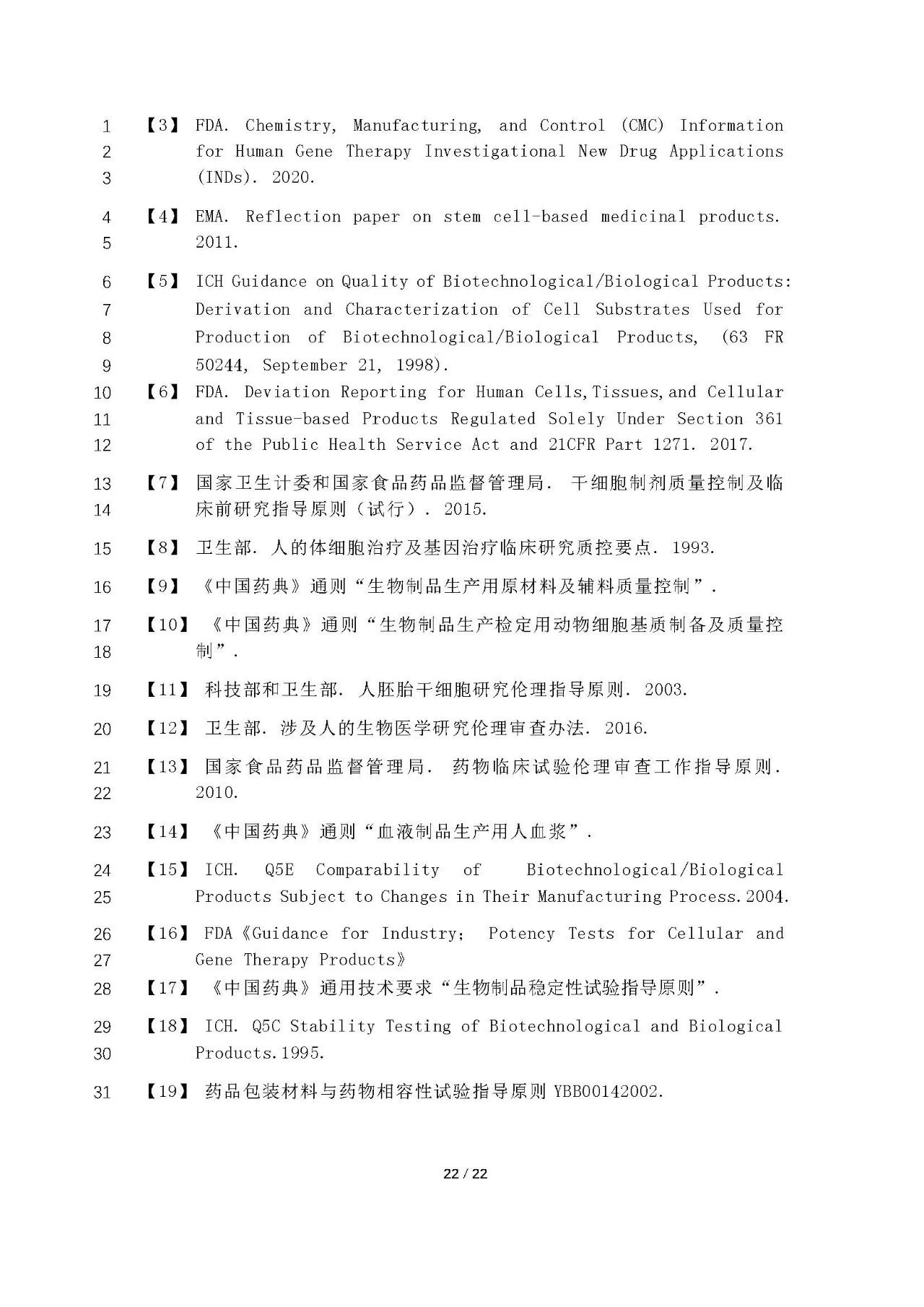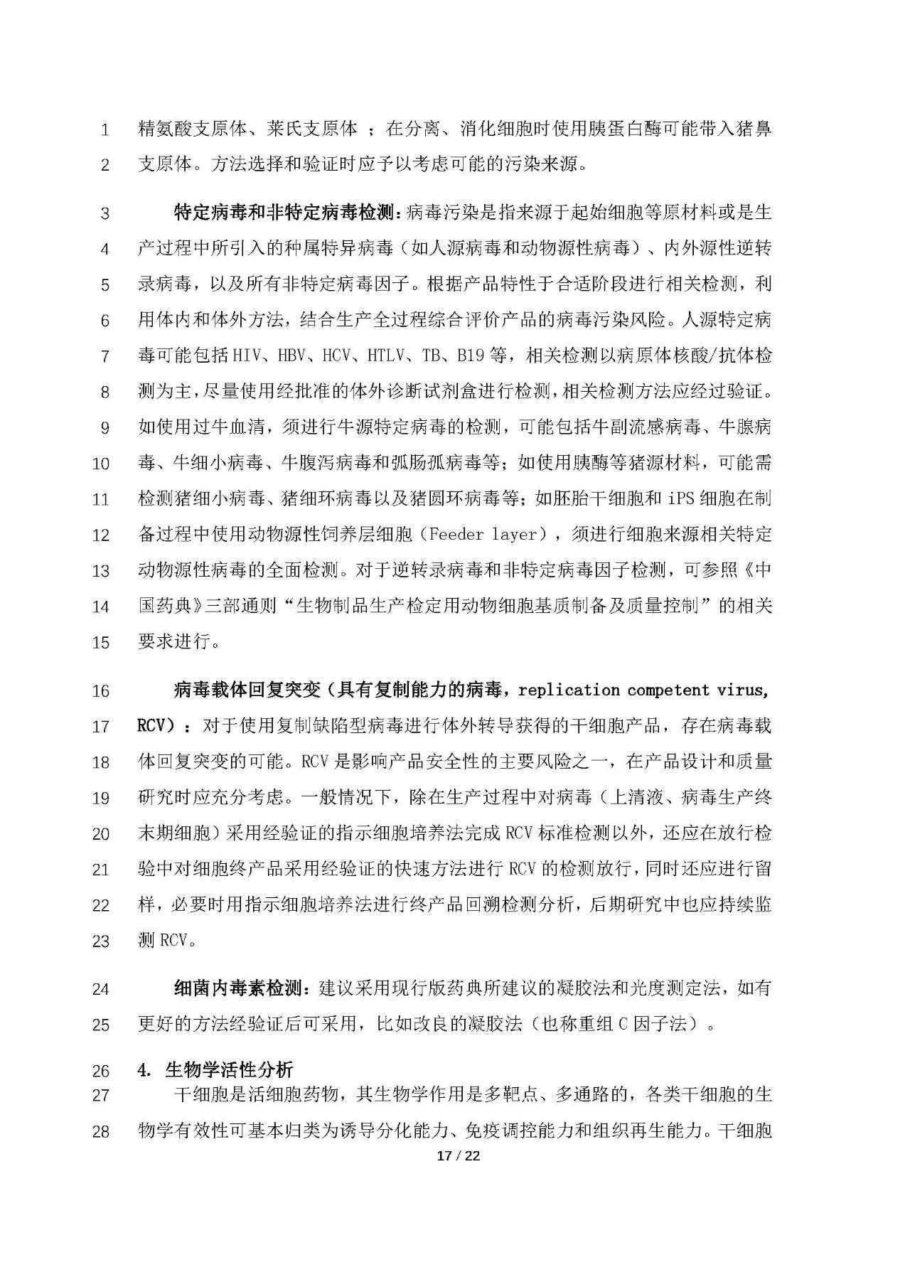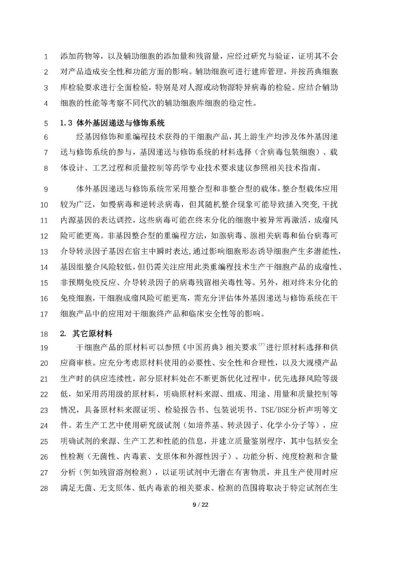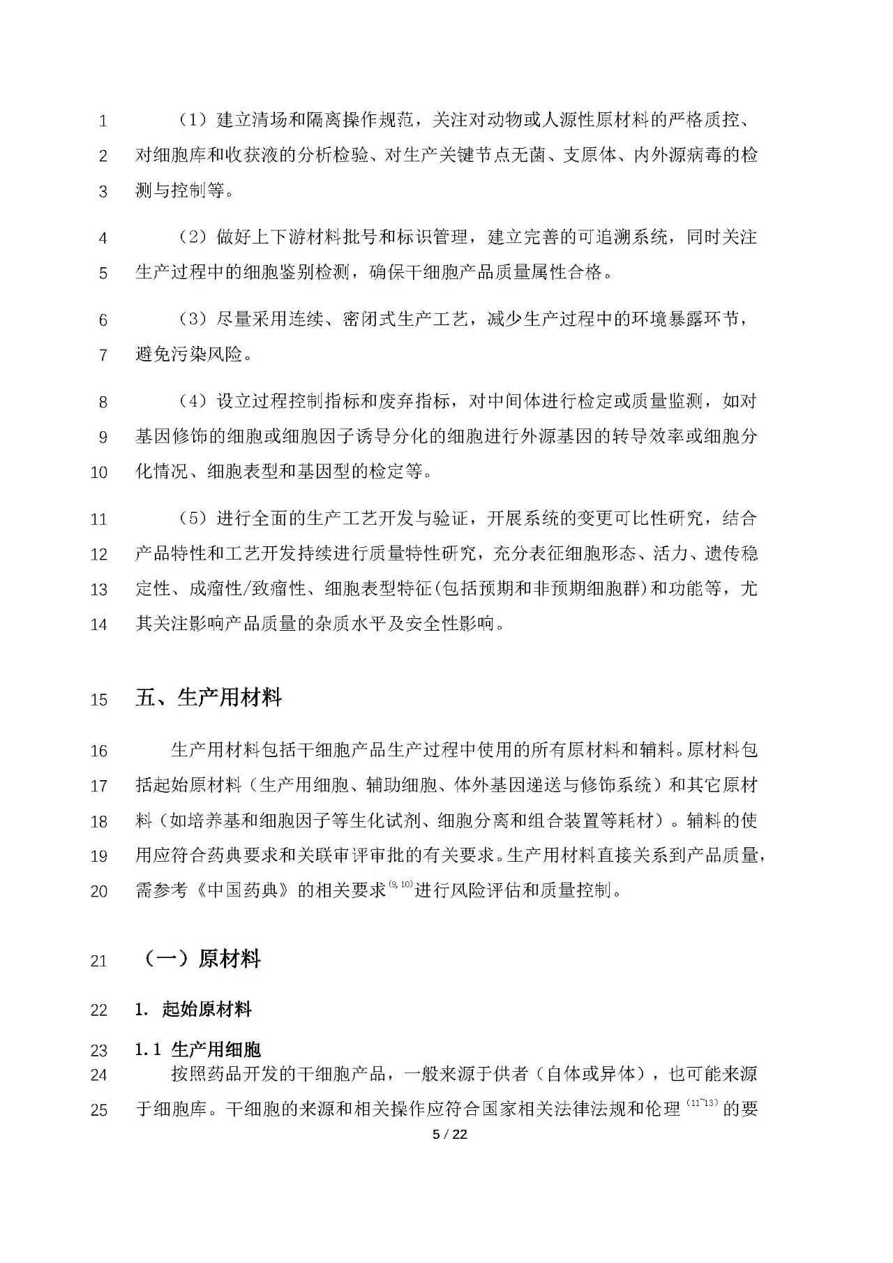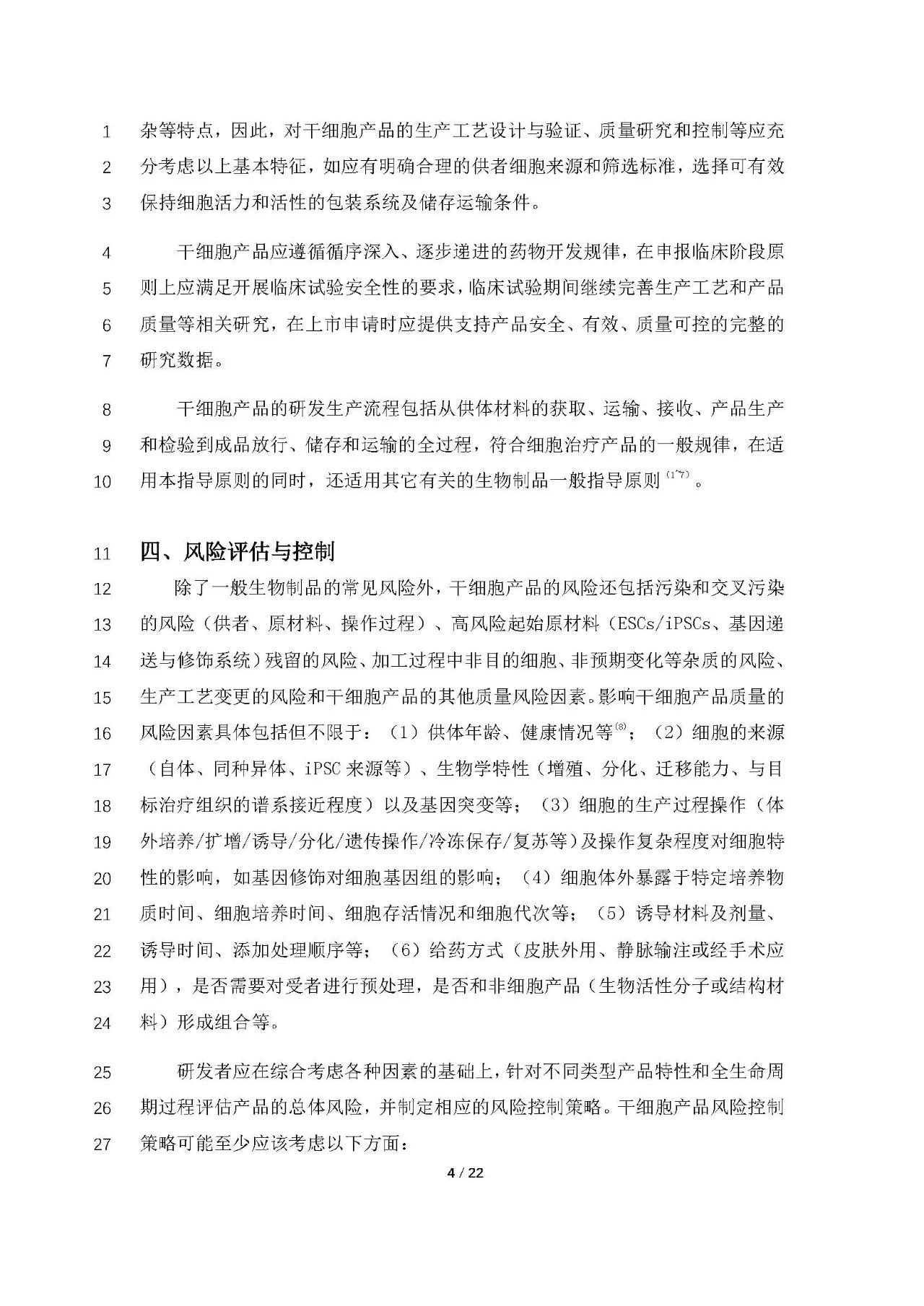 適用范圍:本指導原則中“干細胞產品”包括由人源性的成體干細胞(adult or somatic stem cells,ASCs/SSCs)、人胚干細胞(human embryonic stem cell, hESCs) 和誘導性多能干細胞(induced pluripotent stem cells,iPSCs)擴增、誘導分化,或成熟體細胞轉(分)化獲得的干細胞及其衍生細胞,與輔料相混合,分裝至特定容器,符合特定藥品放行標準,可直接應用患者,也可與組織工程材料 一起用于患者的治療產品。